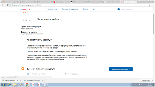 4. В открывшемся окне, ознакомившись с документами, справа нажать кнопку «заполнить заявление».