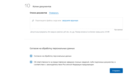 Документы должны быть загружены в формате pdf, doc, xls, jpg.